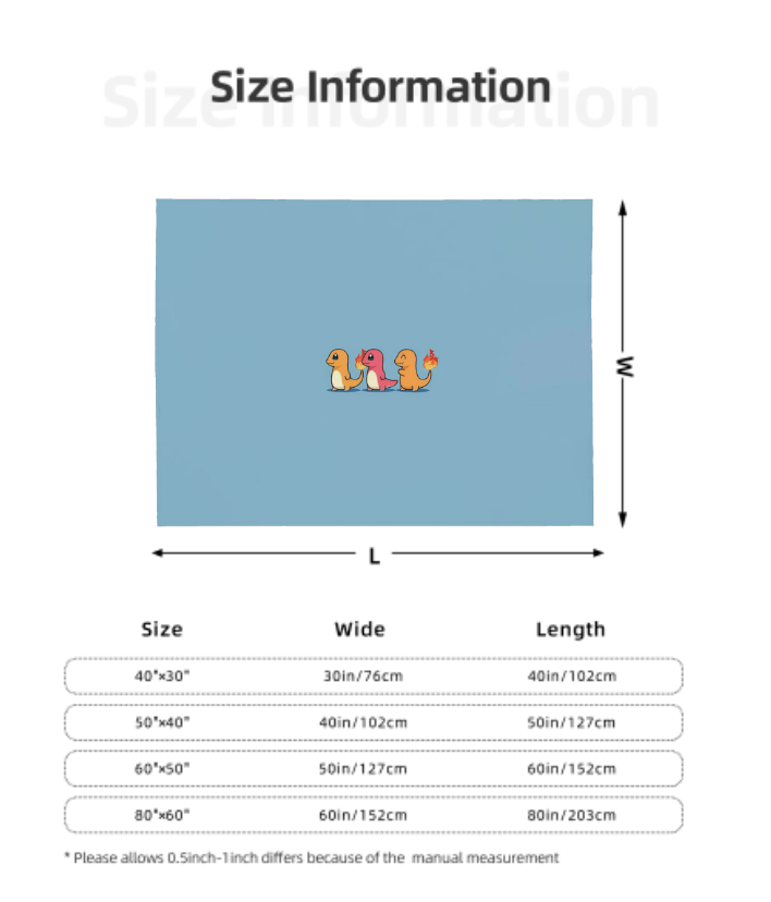 | 50" × 40" | 40in / 102cm | 50in / 127cm | Kids, Travel, or Nap Blanket |